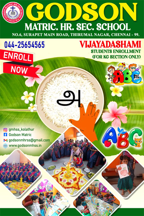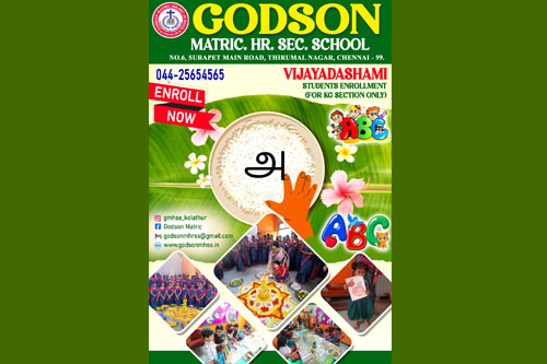 Godson Matriculation Higher Secondary School provides state of the art facilities to its students and staff members to encourage and support all their activities. It has a well stocked library, laboratories for Science and Computers. Sports facilities include outdoor and indoor games such as Kho-Kho, Kabaddi, Throw Ball, Tennikoit, Volley Ball, Yoga/ Meditation, Aerobics, Chess, Carrom etc., Read More